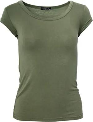 Damen Basic Rundhals T-Shirt - Kurzarm Unterziehshirt Skinny Fit 1001 - Olive L