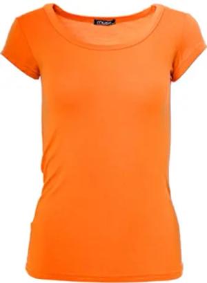 Damen Basic Rundhals T-Shirt - Kurzarm Unterziehshirt Skinny Fit 1001 - Orange S