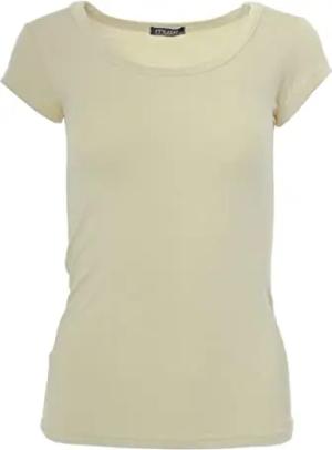Damen Basic Rundhals T-Shirt - Kurzarm Unterziehshirt Skinny Fit 1001 - Sand M