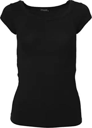 Damen Basic Rundhals T-Shirt - Kurzarm Unterziehshirt Skinny Fit 1001 - Schwarz M