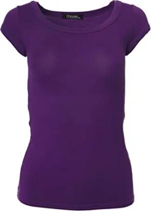 Damen Basic Rundhals T-Shirt - Kurzarm Unterziehshirt Skinny Fit 1001 - Violett L