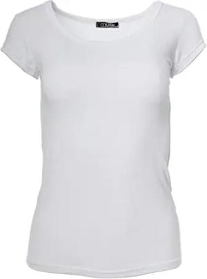 Damen Basic Rundhals T-Shirt - Kurzarm Unterziehshirt Skinny Fit 1001 - Weiß S