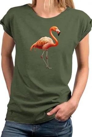 Damen Shirt Flamingo Kurzarm Top Sommer Oberteile mit Tiermotiven Damenshirt Frauen Tshirt mit Aufdruck Grün XXXXXL