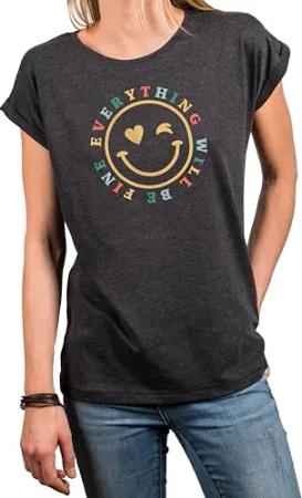Smile T-Shirt Damen mit Herz Aufdruck - Spruch Retro Hippie Motiv 70er 80er Jahre Festival Top Grau Große Größen M