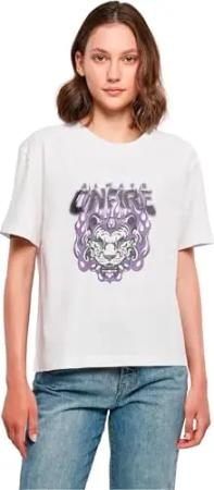 Damen Mst358-wild Heart Leo T-Shirt, Weiß, XS EU