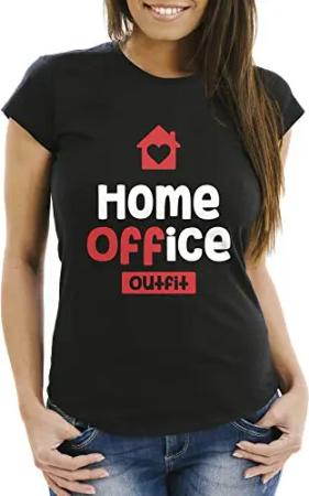 Damen T-Shirt Aufdruck Home-Office Outfit Arbeit zuhause Frauen Fun-Shirt Büro Spruch lustig schwarz XS