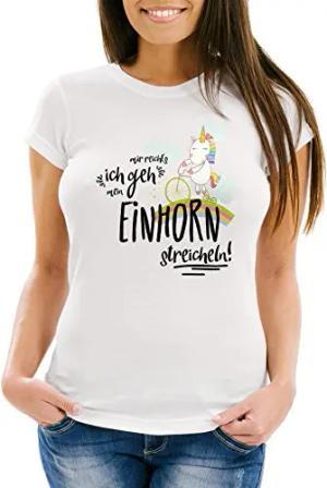 Damen T-Shirt Einhorn Unicorn Mir reichts ich GEH Abenteuer erleben Slim Fit weiß M