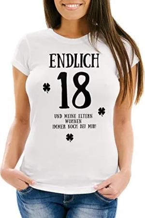 Damen T-Shirt Endlich 18 und Meine Eltern wohnen immernoch bei Mir Geschenk zum 18. Geburtstag Slim Fit weiß XXL