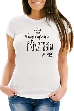 Damen T-Shirt mit Spruch, Sag einfach Prinzessin zu Mir, Slim Fit tailliert aus weicher Baumwolle weiß XXL