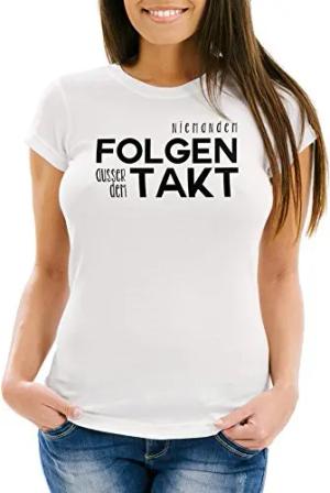 Damen T-Shirt niemandem Folgen außer dem Takt Sprüche Party Feiern Techno Festival Slim Fit Weiss XS