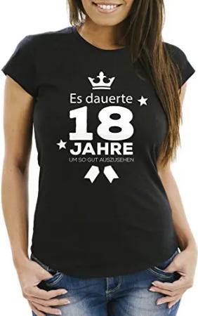 Damen T-Shirt runder Geburtstag Volljährig Es dauerte Jahre um so gut auszusehen 18 20 25 30 40 50 60 70 75 80 Jahre Fun-Shirt Schwarz M