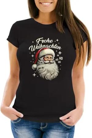 Weihnachtsshirt Damen Spruch T-Shirt Frohe Weihnachten Vintage Weihnachtsoutfit Frauen Schwarz 3XL