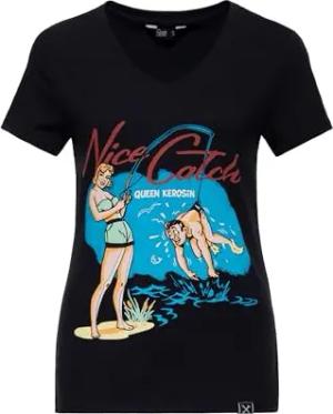 Damen T-Shirt · Printshirt · Vintage · Statement-Print · 50s · Retro · Rockabella · Rockabilly · Slim Fit · Elastisch · Rundhals · Kurzarm · Pinup · Nice Catch