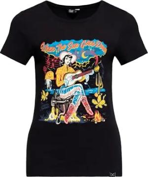 Damen T-Shirt Vintage Retro Rockabilly 50s Print Artwork Comic Cowgirl Western Texas When The Sun Goes Down