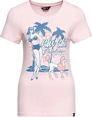 Damen Vintage Shirt T-Shirt Slim Fit Frontprint Kurzarm Retro Poodle Pin-Up Beach Chi Chi Beach Poodle
