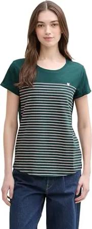 Damen Streifen T-Shirt mit Herz-Stickerei auf der Brust 18815 - Green Rose Stripe XS