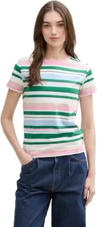 Damen 1046550 T-Shirt, 37814-Green White Stripe, L