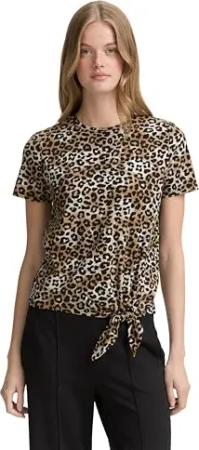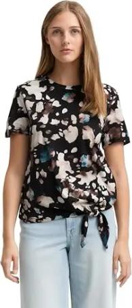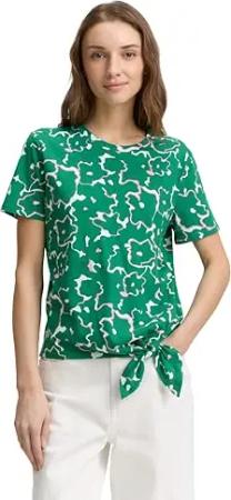 Damen Basic T-Shirt mit Knotendetail, green minimal print, S