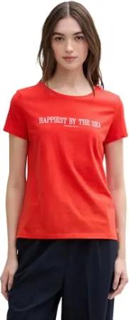 Basic T-Shirt mit Print, Scarlet Red, XS