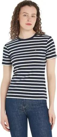 Damen T-Shirt Kurzarm Slim Cody Rundhalsausschnitt, Mehrfarbig (Breton Dark Night Navy STP), L