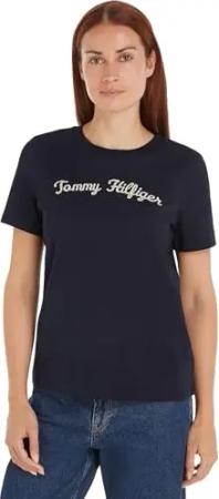 Damen T-Shirt Kurzarm Logo Rundhalsausschnitt, Weiß (Th Optic White), XS