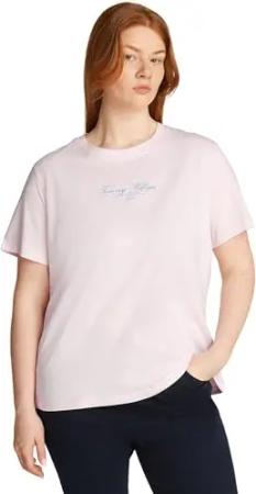 Damen T-Shirt Kurzarm Script Crew Neck Regular Fit, Rosa (Light Pink), 50
