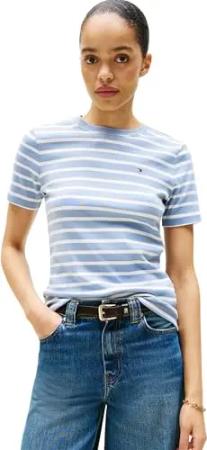 Damen T-Shirt Kurzarm Slim Cody Rundhalsausschnitt, Mehrfarbig (Brisk Blue/Ecru STP), M