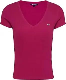 Damen T-Shirt Kurzarm Slim Essential Rib V-Ausschnitt, Rot (Brilliant Berry), XS