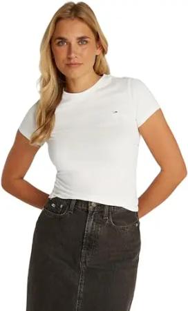 Damen Tjw Slim Essential Logo2 Tee EXT Dw0dw20913 S/S T-Shirt, White (Ecru), XXS EU