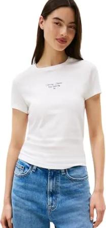 Damen Tjw Slim Linear Tee EXT Dw0dw21164 S/S T-Shirt, White (Ancient White), XXS EU