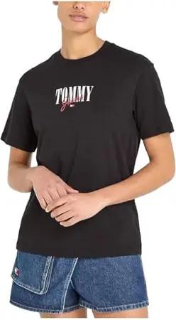 Tommy Hilfiger Essential Damen-T-Shirt, Schwarz, Größe S, Schwarz