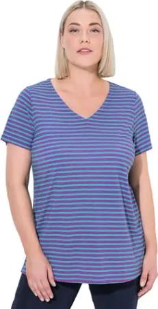 Damen große Größen Übergrößen Plus Size Shirt, Ringel, Rundhals, Halbarm, offenkantig
