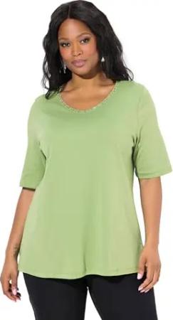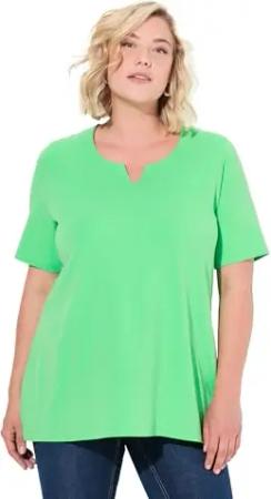 Damen große Größen Übergrößen Plus Size Shirt, doppellagige Vorderseite, Slim, Rundhals, Halbarm frühlingsgrün 50+ 810528430-50+