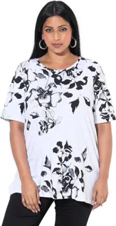 Damen große Größen Übergrößen Plus Size T-Shirt, Blüten, A-Linie, Rundhals, Halbarm, Pima Cotton schneeweiß 42+ 840066200-42+