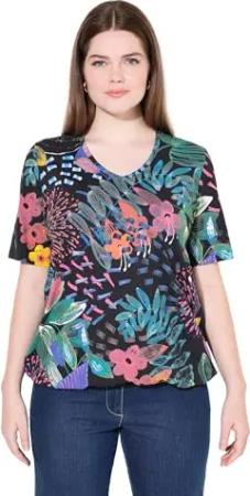 Damen große Größen Übergrößen Plus Size T-Shirt, V-Ausschnitt, Relaxed, Halbarm