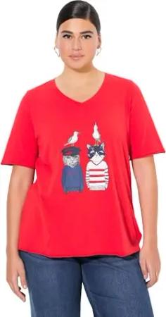 Damen große Größen Übergrößen Plus Size T-Shirt, Katzen, A-Linie, V-Ausschnitt, Halbarm neon rot 58+ 836020520-58+