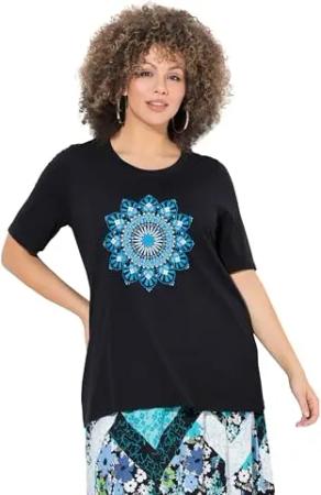 Damen große Größen Übergrößen Plus Size T-Shirt, Mandala, A-Linie, Rundhals, Halbarm schwarz 42+ 838774100-42+