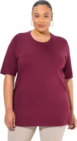 Damen große Größen Übergrößen Plus Size T-Shirt, Rundhalsausschnitt, Relaxed, Halbarm dunkle Beere 66+ 486910544-66+