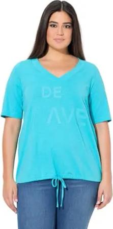 Damen große Größen Übergrößen Plus Size T-Shirt, Schriftdruck, Saumband, V-Ausschnitt, Halbarm tiefes Aqua 62+ 838616740-62+