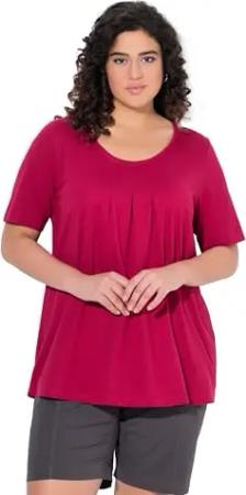 Damen große Größen Übergrößen Plus Size T-Shirt, Zierfalten, A-Linie, Rundhals, Halbarm, Modal dunkle Himbeere 46+ 796473531-46+