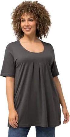 Damen große Größen Übergrößen Plus Size T-Shirt, Zierfalten, A-Linie, Rundhals, Halbarm, Modal Graphitgrau 46+ 796473110-46+