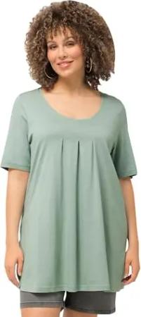 Damen große Größen Übergrößen Plus Size T-Shirt, Zierfalten, A-Linie, Rundhals, Halbarm, Modal helles moosgrün 50+ 796473182-50+