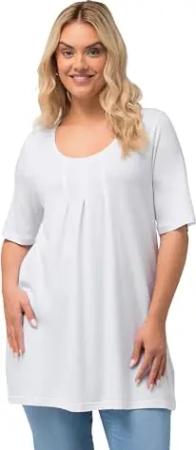Damen große Größen Übergrößen Plus Size T-Shirt, Zierfalten, A-Linie, Rundhals, Halbarm, Modal schneeweiß 58+ 796473200-58+