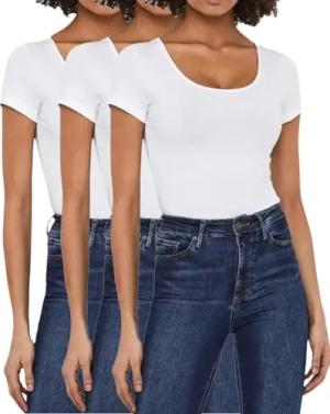 Damen T-Shirt, Kurzarm-Top, Figurbetont, 3er-Multi-Set (254 XS, 3X White)