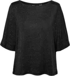Damen Vmkanva 2/4 Glitter Top JRS Kurzarmbluse, Black/Detail:Black Lurex, Small