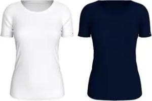 Damen 2er Pack T-Shirts Kurzarm Weiter Rundhalsausschnitt, Weiß (White/Desert Sky), S