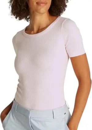 Damen T-Shirt Kurzarm 5X2 Rib Slim Fit, Rosa (Light Pink), XS