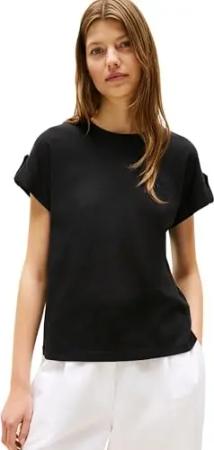 Damen T-Shirt Kurzarm Slim Cody Rundhalsausschnitt, Schwarz (Black), M