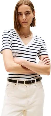 Damen T-Shirt Kurzarm Slim Cody Rundhalsausschnitt, Mehrfarbig (Breton Dark Night Navy STP), M