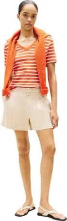 Damen T-Shirt Kurzarm New Slim Cody mit V-Ausschnitt, Mehrfarbig (Classic Breton Orange/ Ecu), XXL